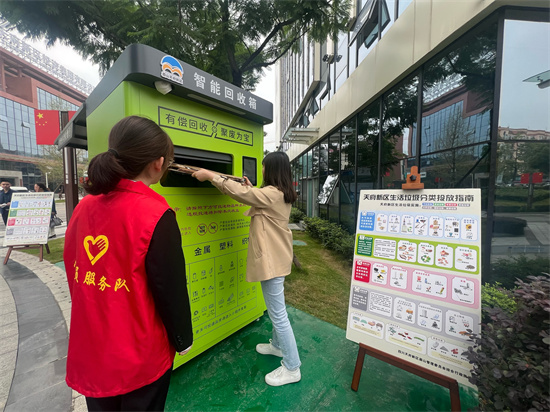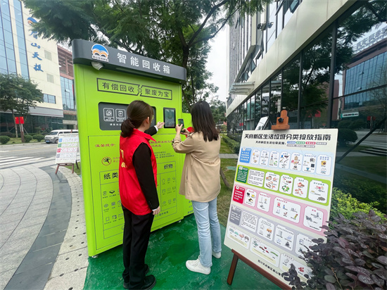 手机扫码、自动开箱、自动称重、收益返现……近日,一台崭新的智能垃圾分类设备在眉山天府新区“落户亮相”。